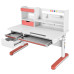 Эргономичная, растущая парта с вместительной надстройкой. Надстройка включает в себя один выдвижной ящик, три полки, выдвижную подставку для книг, и специальные отверстия для крепления аксессуаров.