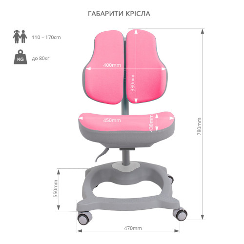 Эргономичное компьютерное кресло Diverso - это модель с удобным механизмом регулировки, которая позволит Вашему ребенку с лёгкостью пользоваться креслом. Эргономическая спинка и сиденье кресла снижают давление на позвоночник и позволяют вашему малышу удобно сидеть, когда делает уроки или рисует. Кресло подходит детям от 4 лет. Конструкция колёс, сделана таким образом, что при нагрузке они блокируются. Когда кресло перестает двигаться, ребенок может лучше сосредоточиться на заданиях.