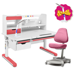 Растущий комплект для школьников парта FunDesk Sentire Pink + кресло для дома FunDesk Bravo Pink