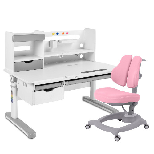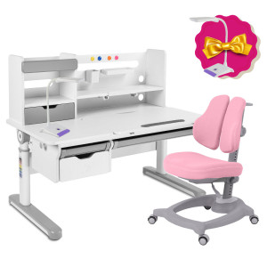Растущий комплект для школьников парта FunDesk Pensare Grey + эргономичное кресло FunDesk Diverso Pink