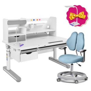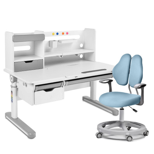 Растущий комплект для школьников парта FunDesk Pensare Grey + кресло для дома FunDesk Vetta II Blue
