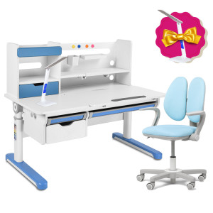 Растущий комплект для школьников парта FunDesk Sentire Blue + эргономично кресло Fundesk Mente Blue