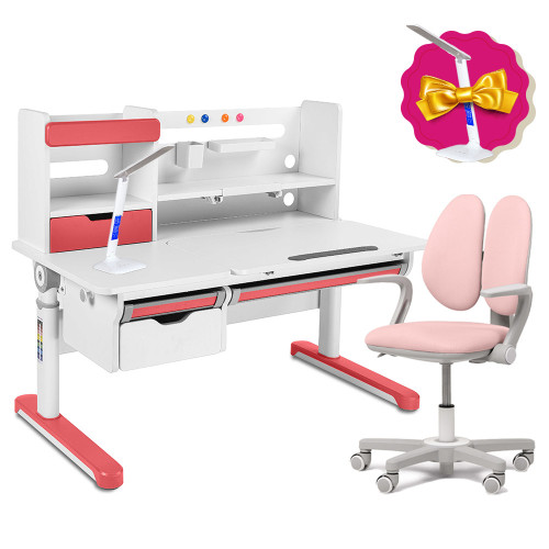 Растущий комплект для школьников парта FunDesk Sentire Pink + кресло Fundesk Mente Pink с подлокотниками