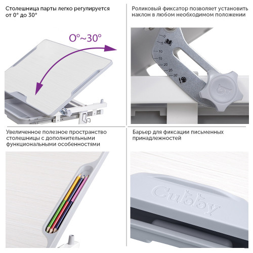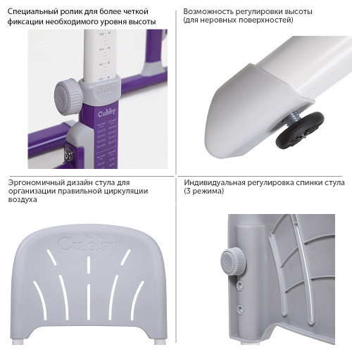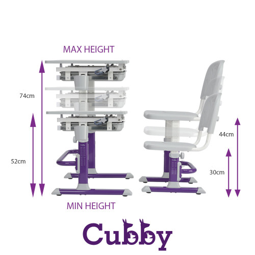 Cubby Lupin Purple — растущая парта со стульчиком , позволяет оптимизировать детское рабочее место, а также обеспечить идеальные условия для развития ребенка. Представленные изделия создают комфорт в процессе проведения обучения и игр.