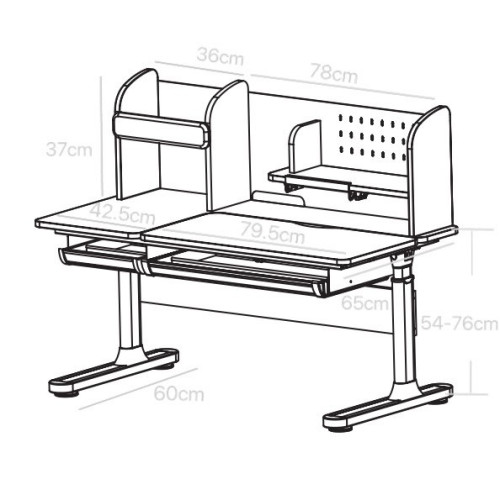 Столешница парты имеет две зоны, рабочая (наклонная) и статичная. Особенностью рабочей зоны является возможность менять наклон поверхности. В то время как на статичной части можно разместить лампу, книги и предметы канцелярии.