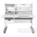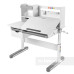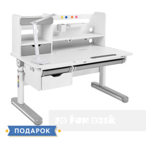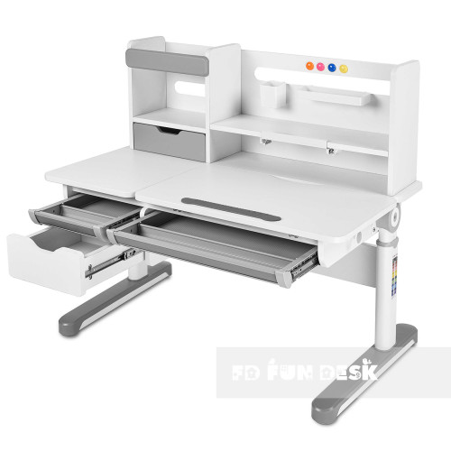 Эргономичная, растущая парта с вместительной надстройкой. Надстройка включает в себя один выдвижной ящик, три полки, выдвижную подставку для книг, и специальные отверстия для крепления аксессуаров.