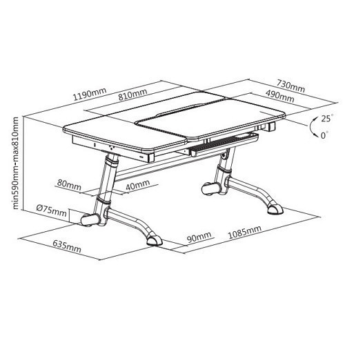 - Размер стола (ШхГхВ): 1190 x 730 x 590-810 мм