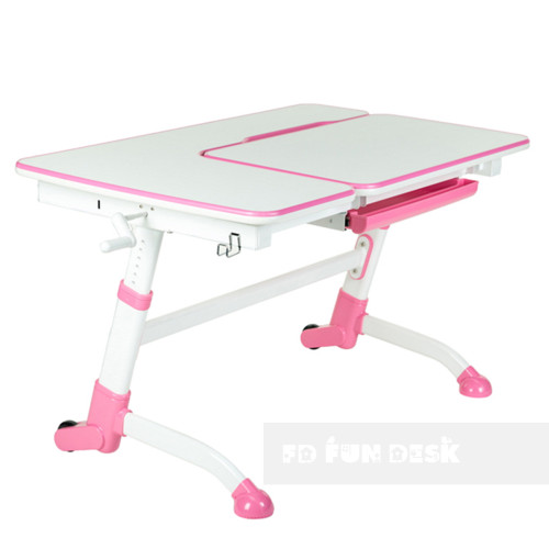 Стол-трансформер Amare – эргономичный, с увеличенной рабочей поверхностью и дополнительной полкой, регулируемый по высоте с современным дизайном стол для вашего ребенка. Дополнительная полка предназначена для хранения книг и канцелярских принадлежностей, Поверхность учебного стола можно наклонять до 25 ° для удобного письма, чтения и рисования. Наличие кривошипной рукоятки позволяет легко регулировать угол наклона столешницы. Специально разработанный дизайн колесиков обеспечивает максимальную мобильность парты. Антибликовое покрытие столешницы защищает глаза вашего ребенка от усталости.