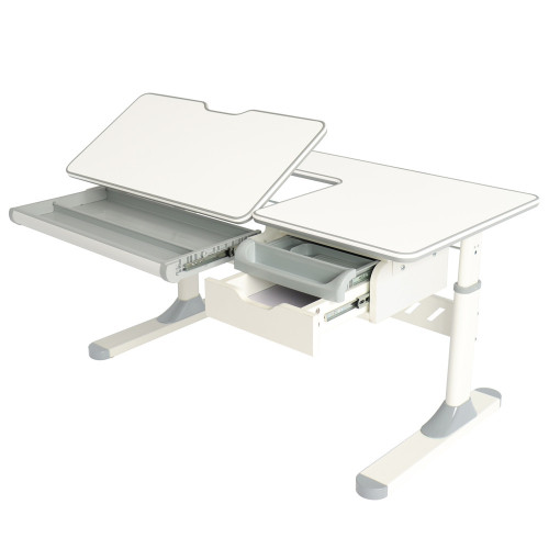 Столешница имеет две зоны, наклоненную и статичную. Благодаря возможности наклона столешницы от 0° до 50° парта Fiore идеально подходит для любого вида обучения (письмо, чтение, рисование...). Также стоит отметить отметить важность статичной части столешницы, на которой можно разместить лампу и ноутбук для удаленного обучения.