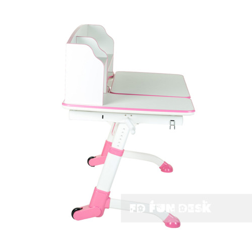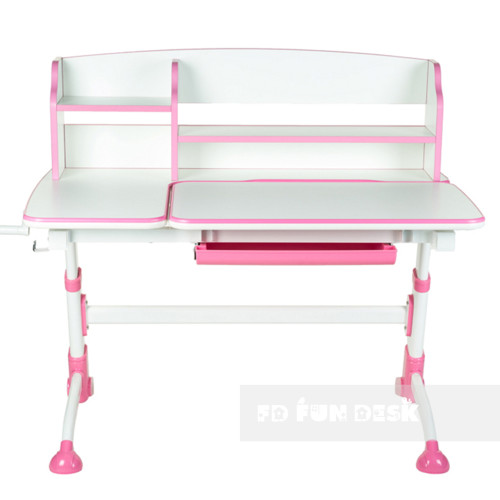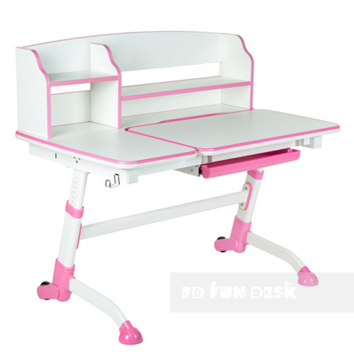 Стол-трансформер Amare II – эргономичный, регулируемый по высоте, с современным дизайном и навесной полкой стол для вашего ребенка. Наличие полок над столешницей увеличивает рабочее пространство, создавая дополнительное место для хранения книг и канцелярских принадлежностей. Наклоняемая до 25° рабочая поверхность дает возможность выбрать максимально удобный угол наклона для письма, чтения и рисования. Антибликовое покрытие столешницы защищает глаза вашего ребенка от усталости. Благодаря многоступенчатому механизму регулировки высоты парта «растет» вместе с вашим ребенком. Наличие колесиков позволяет легко перемещать парту, не повреждая пол.