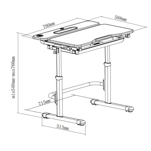 | Габариты стола (ШхГхВ): | 780x570x540-760 мм |