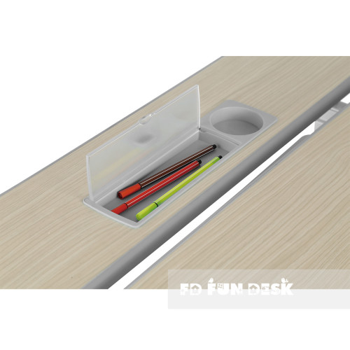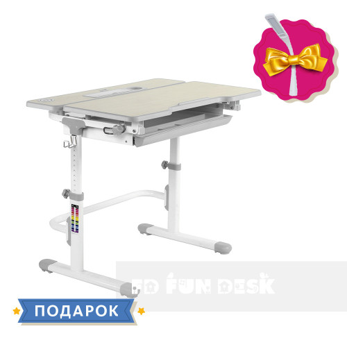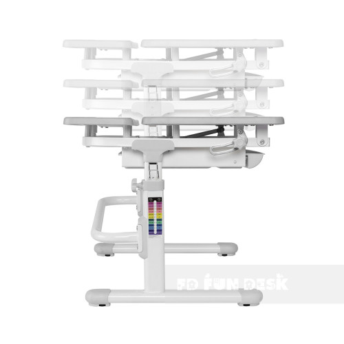 Парта Lavoro L – эргономичная, компактная, регулируемая по высоте. Поверхность учебного стола можно наклонять до 50 ° для удобного письма, чтения и рисования. Наличие специальной защиты от защемления пальцев позволяет уберечь руки вашего ребенка от повреждений. Под столешницей расположена выдвижная полка с несколькими отделениями, что обеспечивает достаточно места для хранения книг и канцелярских принадлежностей. Наличие многоступенчатого механизма регулировки высоты позволяет парте «расти» вместе с вашим ребенком.