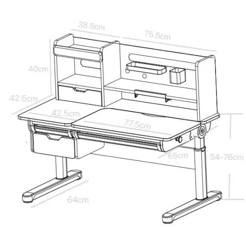 FunDesk Sentire является удлиненной на десять сантиметров версией парты Pensare. Также как и младшая версия имеет вместительную надстройку с тремя полками, выдвижным ящиком, подставкой для книг, и перфорацией для крепления дополнительных аксессуаров.
