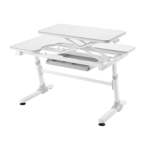 Стол Littonia – эргономичный, с увеличенной рабочей поверхностью, регулируемый по высоте с современным дизайном парта для школьников. Поверхность учебного стола можно поднять для удобного чтения и рисования. Наличие кривошипной рукоятки позволяет легко регулировать угол наклона столешницы. Антибликовое покрытие столешницы защищает глаза вашего ребенка от усталости.