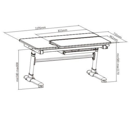 - Размер стола (ШхГхВ): 1195 x 735 x 580-800 мм