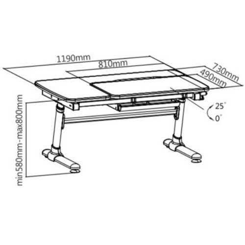 - Размер стола (ШхГхВ): 1190 x 730 x 580-800 мм