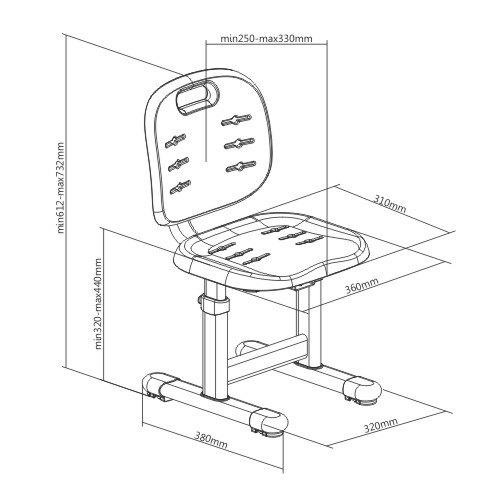 Диапазон изменения высоты: 320~440 мм
