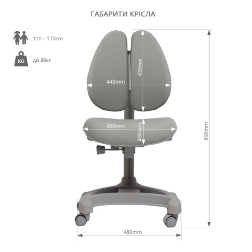 Кресло Aranda Grey способствует формированию правильной осанки и позволит снизить нагрузку на спинку Вашего ребенка при занятиях и развлечении.