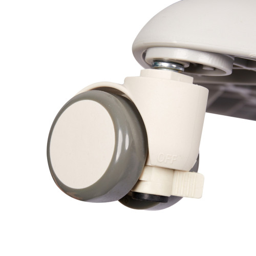Наличие дополнительно встроенных стопперов в колесе обеспечивает надежность и устойчивость, а звездочное расположение препятствует опрокидыванию кресла. Легко передвигается при необходимости и полностью блокируется вращение колес при сидении. Материал экологически чистый, не имеет запаха и приятен на ощупь.