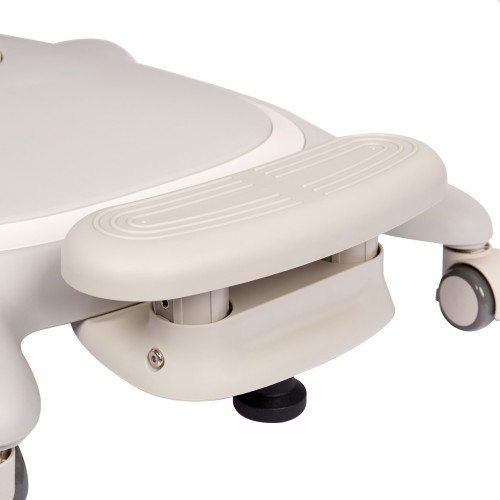 В кресле FunDesk Arnica блокировка происходит благодаря кнопке, которая при включении (функция ON) блокирует колеса и прекращает движение на любой поверхности под давлением 20 кг. При выключении кнопки (функция OFF) на колесиках кресла, его свободно можно передвигать по комнате. Малыш не будет отвлекаться от уроков, катаясь на кресле. Материал экологически чистый, не имеет запаха и приятен на ощупь.