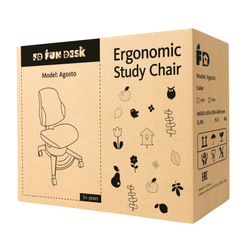 Эргономичное компьютерное кресло Agosto - это новая модель с удобным механизмом регулировки, которая позволит Вашему ребенку с лёгкостью пользоваться креслом. Эргономическая спинка и сиденье кресла снижают давление на позвоночник и позволяют вашему малышу удобно сидеть, когда делает уроки или рисует. Кресло подходит детям от 4 лет. Конструкция колёс, сделана таким образом, что при нагрузке они блокируются. Когда кресло перестает двигаться, ребенок может лучше сосредоточиться на заданиях.