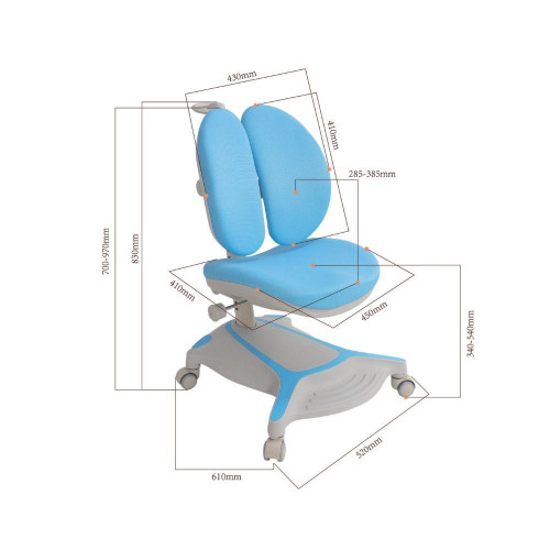 Ортопедическое кресло FunDesk Bunias Blue – это новинка, которая отлично подойдет активным детям, благодаря эргономичному дизайну. При долгом сидении на школьных стульях у ребенка может неправильно сформироваться осанка. Кресло Bunias хорошо справляется со снятием нагрузки на спинку Вашего ребенка при занятиях и развлечении. Спинка этого кресла состоит из двух половинок. Такое расположение ещё больше влияет на правильное развитие позвоночника благодаря дополнительной поддержке лопаток. Размеры кресла регулируются вручную. Наличие дополнительно встроенных стопперов в колесе обеспечивает надежность и устойчивость, а звездочное расположение препятствует опрокидыванию кресла. Легко передвигается при необходимости и полностью блокируется вращение колес при сидении. Материал экологически чистый, не имеет запаха и приятен на ощупь.