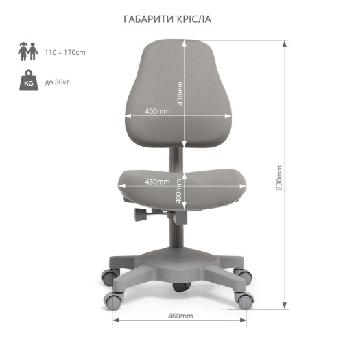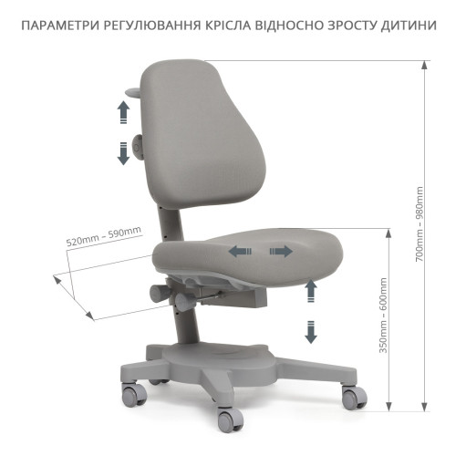 Кресло регулируется под рост ребенка от 700 – 980 mm.