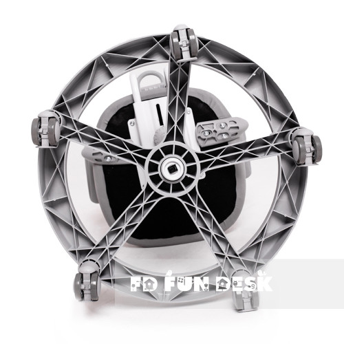 Устойчивость кресла создаётся при помощи крестообразного расположения колесиков. Они оснащены специальными стопперами, которые блокируют движение кресла под давлением веса ребенка, что также предотвращает повреждение паркета в квартире. Кроме того, задача круглой подставки в том, чтобы ребенок мог опереться на неё ножками и дать им время отдохнуть.