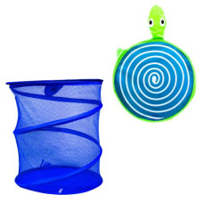 Корзина для игрушек цилиндрической формы, сетчатая. Крышечка для корзины выполнена в форме животного..
