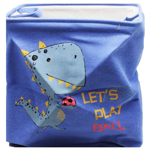 Корзина для игр. Корзина-ящик станет прекрасным хранилищем для игрушек или чего-либо другого. Имеет яркий дизайн с веселым динозавром, играющим с мячом и надписью 'Давай сіграем в мяч'. Очень полезная, удобная и яркая вещь. Изготовлен из качественных и безопасных материалов. Без крышки с двумя ручками. Размеры: 34х27х35см.
