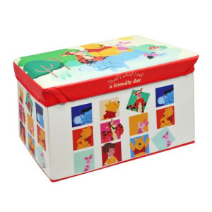 Корзина-ящик будет прекрасным хранилищем для детских игрушек. Имеет яркий дизайн с изображениями персонажей мультфильма 'Винни Пух'. Очень полезная, удобная и яркая вещь. Изготовлена из качественных и безопасных материалов. Компактно складівается и не занимает много места. Размеры: 40х25х25 см..