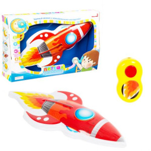 Нічник в формі ракети. Є кілька режимів роботи: тільки світло, тільки звук, світло + звук (звук - тихий шум). Нічник можна зафіксувати на стіні, а вмикати/вимикати за допомогою пульта. Розмір ракети - 36х17 см. Ракета працює від 3-х батарейок АА, пльт - від 2-х батарейок ААА.