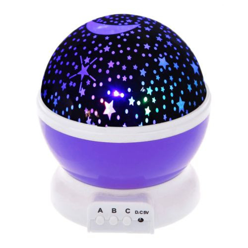 Вращающийся ночник-проектор будет хорошим подарком ребёнку. Ночник создаёт движущиеся проекции звёздного неба на стены и потолок. Питание светильника возможно от USB или же от батареек АА (нет в комплекте). Размер ночника 13х13х14,5 см.