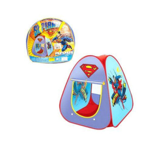 Яркая разноцветная палатка с изображением Бэтмена. Палатку можно установить у себя во дворе, взять с собой на пляж или играть с ней дома. Дверцы на верёвочках и липучках, сетчатые окошки. Размер палатки: 80 х 90 х 80 см. В качестве упаковки - удобная сумка с ручками.