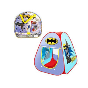 Каждый ребенок мечтает о своем укромном уголке, где можно спрятаться от всех и поиграть с любимой игрушкой, почитать книжку или просто посидеть и помечтать о чем-нибудь. Именно для таких целей и служит детская палатка. Собирать палатку достаточно легко, поэтому с установкой может справиться даже ребёнок. Яркая разноцветная палатка с изображением Бэтмена. Палатку можно установить у себя во дворе, взять с собой на пляж или играть с ней дома. Дверцы на верёвочках и липучках, сетчатые окошки. Размер палатки: 80 х 90 х 80 см. В качестве упаковки - удобная сумка с ручками.