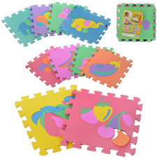 Яркий напольный коврик - пазл состоит из десяти элементов квадратной формы. Разноцветные картинки вн..