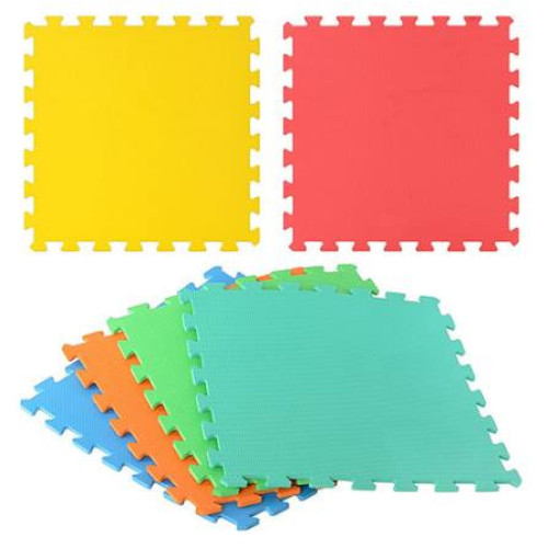 Коврик-мат собирается из 6-ти разноцветный квадратов как пазл (Размер каждого элемента 51х51 см.). Ребенок может сам собрать коврик, тем самым развивая логическое мышление, моторику рук. А потом сможет играть на нем. Благодаря частям коврика разного цвета, ребенок сможет начать изучать цвета. Все части сделаны из нетоксичных, материалов. которые полностью безопасны для ребенка.