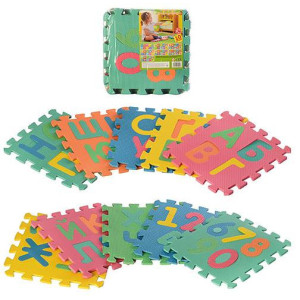 Развивающая игрушка, которую можно порекомендовать для разного возраста. Коврик сотоит из 10-ти частей, которые между собой соеденяются. Каждую букву или цифру можно вынимать и опять складывать на место. Можно использовать как теплый пол для игры ребенка. Развивает усидчивость, мелкую моторику рук. В игровой форме можно слегкостью выучить цифры и буквы. Состоит из 10 квадратов, каждый имеет размер: 29-29см. Упаковка: 10 деталей в кульке, 29-29-8см.