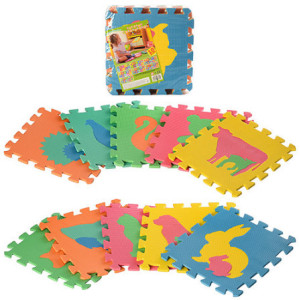 Яркий напольный коврик - пазл состоит из десяти элементов квадратной формы. Разноцветные картинки внутри квадратов состоят из отдельных маленьких частей. Они легко вынимаются и вставляются обратно. Но чтобы найти «домик» для каждого элемента и собрать пазл полностью малышу придётся немало потрудиться. Ведь для крохи это очень сложный и увлекательный процесс, требующий максимальной усидчивости, внимания и ловкости маленьких пальчиков.