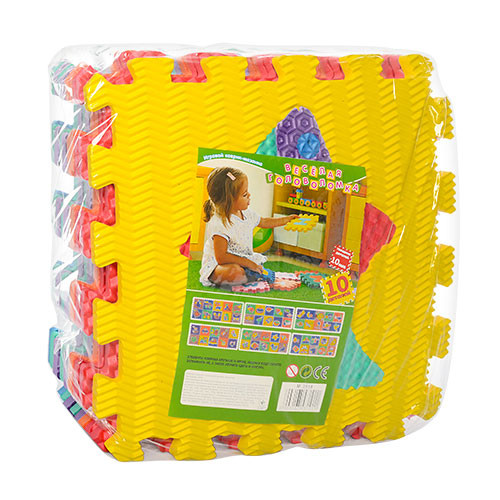 Яркий напольный коврик 3519 - пазл состоит из десяти элементов квадратной формы. Разноцветные картинки внутри квадратов состоят из отдельных маленьких частей. Они легко вынимаются и вставляются обратно. Но чтобы найти «домик» для каждого элемента и собрать пазл полностью малышу придётся немало потрудиться. Ведь для крохи это очень сложный и увлекательный процесс, требующий максимальной усидчивости, внимания и ловкости маленьких пальчиков.