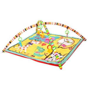 Коврик комплектуется двумя эластичными дугами на которые крепятся на специальных кольцах пять ярких и качественных подвесных игрушек-погремушек.