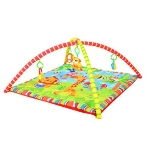 Коврик комплектуется двумя эластичными дугами на которые крепятся на специальных кольцах пять ярких и качественных подвесных игрушек-погремушек.