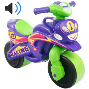 Предназначен для детей от 2 до 5 лет. Развивает воображение и физические способности ребенка. Помимо оригинального дизайна, байка может издавать световые и звуковые эффекты.