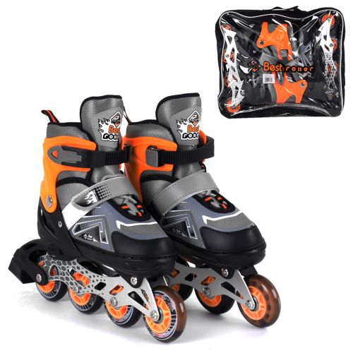 Ролики 'Best Roller'. Фиксация ноги – пяточный ремень, бакля, шнуровка. Материал рамы – алюминий. Материал колес – PVC (поливинилхлорид). Диаметр колес – 6,5 см. Подшипники - ABEC 7. Есть тормоз. Раздвижная система ботинка обеспечивает роликам возможность увеличение размера. В целом данная модель рассчитана на 4 размера. Размер 30-33 (S); стелька – 18 см (размер стельки не меняется). Переднее колесо имеет подсветку. Упакованы в сумку.