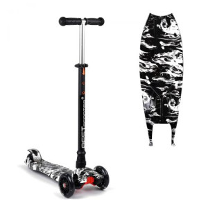 Самокат 'Best Scooter Maxi'. Самокат четырехколесный (задние - сдвоенные), колеса PU, со светом. Передние колеса: диаметр - 12 см, ширина - 3 см; Задние колеса: диаметр - 8 см, ширина - 2,4 см. Высота руля - от 63 см до 86 см. Максимальный вес - 60 кг. Рама и руль – алюминий, дека – пластик