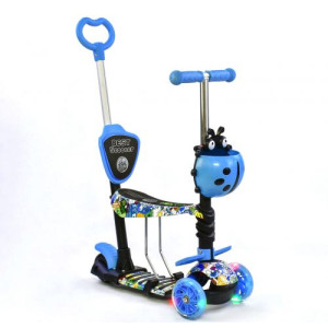 •Алюминиевый Т-образный руль; • Регулировка высоты руля; • Ручки выполнены из качественной резины с рельефным узором; • Наклонный поворот руля; • Ручка родительского контроля (высота регулируется); • Подножки; • Сидение, спинка, корзинка, подножки и ручка родительского контроля – съемные, и изготовлены из высокопрочного износостойкого пластика; • Ножной тормоз (step-on-brake), располагается над задним колесом; • 2 вида колес. Два передних светятся и изготовлены из полиуретана (PU), а заднее - из поливинилхлорида (пластика PVC); Длина деки - 54 см; Ширина деки – 14 см; Минимальная высота руля от пола – 63 см, максимальна высота руля - 72 см; Длина руля - 26 см, диаметр ручек - 3.5 см; Минимальная длина ручки родительского контроля – 75 см; максимальная – 85 см. Минимальная высота сидения от пола – 27 см; максимальная – 32 см. • Размеры колес: Передние колеса PU: диаметр - 12 см, ширина – 3 см; Заднее колесо PVC: диаметр - 9 см, ширина – 4 см.