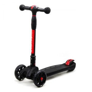 Самокат трехколесный, складной. Устойчивая, надежная конструкция, поворот осуществляется наклоном руля. Рама самоката выполнена из алюминия, дека - из пластика. Высота руля регулируется от 60 до 71 см. Размер деки - 13х31 см. Колеса самоката выполнены из полиуретана, со светом (диаметр: 12 см. - передние колеса; 8 см. - задние). Подшипники типа ABEC-7. Есть задний ножной тормоз. Максимальная нагрузка - 50 кг.