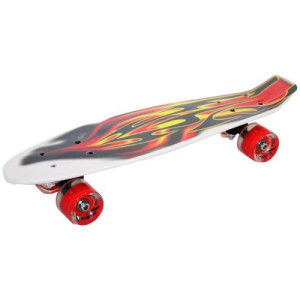 Пенни Борд со колёсами, которые светятся во время езды. Легкая дека сделана из прочного формованного пластика. Имеет противоскользящую поверхность. Длинна деки - 55 см, ширина - 14,5 см. Колёса PU, со светом, d=6 см. Подвески: алюминий. Максимальная нагрузка 70-80 кг.