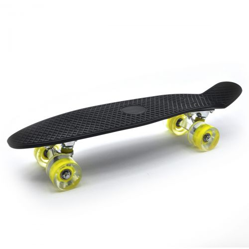 Пенни-борд. Легкая дека сделана из прочного формованного пластика. Длинна деки - 55 см., ширина - 15 см. Колёса PU, d=6 см. Максимальная нагрузка 70-80 кг.