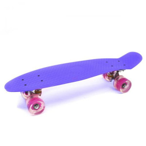 Пенни Борд со светящимися колёсами. Дека пенни борда изготовлена из жесткого пластика и покрыта анти-скользящей лентой. Покрытие верхней части деки: цветной наждак (Grip Tape). Колёса скейта выполнены из полиуретана, что делает катание бесшумным. Каждое колесо светится во время движения. Длинна деки - 56 см, ширина - 15 см. Колёса PU, со светом, d=6 см. Подшипники: ABEC – 7. Подвески: алюминий. Максимальная нагрузка 70-80 кг.